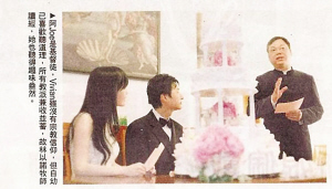 中西合璧,珠聯(lián)璧合,是個美好回憶?墒侵蟮膱蟮,讓身為好友的MARK很有感觸,看了那些形容婚禮的字眼,什么“寒酸”“鬼祟”“CHEAP嫁 ”,“令我很不明白,人家辦喜事,為什么香港傳媒會有這樣損的文化?現(xiàn)場的朋友,都覺得這是最完美的婚禮,替一對璧人感到高興,他們能夠在彼此一手建立的家中,和四只貓兒一起分享爸爸媽媽的喜悅,是最完美的安排,他們光明正大的結婚,儀式完了立即和傳媒分享照片,每個人都有不受騷擾的權利”。