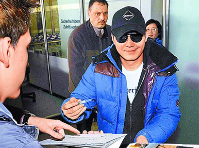 圖文:黎明飛抵柏林 微笑為影迷簽名