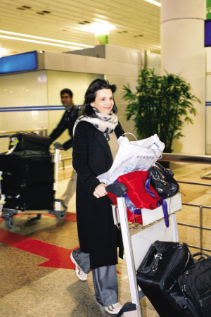 昨晚8時(shí)25分,奧斯卡得主、法國影星朱麗葉·比諾什由韓國首爾飛抵上海浦東國際機(jī)場。比諾什此次抵滬可謂十分低調(diào),現(xiàn)身機(jī)場時(shí)僅有一名男助理陪同。機(jī)場沒有影迷接機(jī),也沒有其他媒體來競相采訪,接機(jī)的主辦方同樣沒有拿出顯眼的標(biāo)語,現(xiàn)場十分冷清。