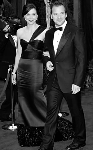 瑪吉與皮特于2002年拍拖,2006年便舉行了訂婚儀式,同年誕下女兒Ramona,一家三口住在紐約的布魯克林區(qū)。38歲的皮特與瑪吉一樣愛拍獨(dú)立電影,曾演出《鐵面王子》及《空中危機(jī)》,并因出演《欲蓋彌彰》而獲得金球獎(jiǎng)最佳男配角提名。