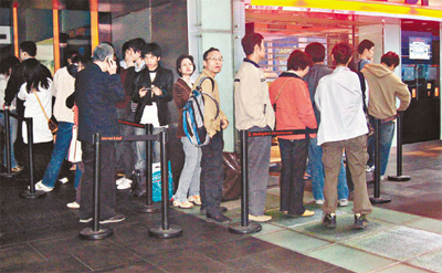 至于另一邊圓方的售票站,因信用卡付款出問題只能收現(xiàn)金,令賣票進度大阻,單排頭位買票便花了近一小時,其他輪候歌迷要急急往銀行提款,以免耽誤事。對于售票機制,學友經(jīng)理人陳淑芬說:“因為不在紅館搞,所以就沒有限制了!”提到信用卡機失靈,她說:“不關這部機的事,是電話線出問題,后來也就沒事了!”