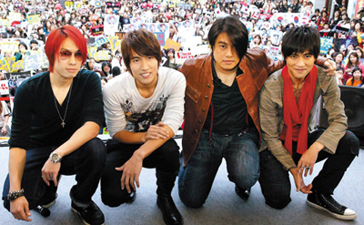 F4前天在淡水漁人碼頭發(fā)表新歌,4人合體魅力加倍,唱片銷售量暴增7000張,昨天趁勢舉辦專輯蓋印會,滿足粉絲跟F4近距離接觸。面對媒體逼問,仔仔雖然心情沉重,但一站上舞臺仍擠出笑臉,溫柔地幫歌迷披上圍巾,還拱朱孝天跟歌迷舌吻。意外搶走焦點,仔仔對F3感到不好意思,朱孝天笑說,“仔仔功力大增,我現(xiàn)在管不住他了!