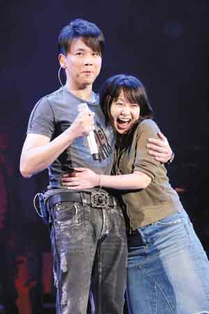 之后陶喆再請(qǐng)來一名身材比較豐滿的日本女歌迷上臺(tái),伴他一起唱《流沙》,陶喆更公開大贊該歌迷很靚女,唱歌期間,陶喆不是拖著這位女歌迷,就是緊緊攬著她,最后更大方吻向?qū)Ψ降念~頭,這位女歌迷也幸福得錯(cuò)把自己的名字說成“很高興”,而臺(tái)下歌迷更是尖叫連連。