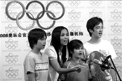以往韋唯的三個(gè)兒子到錄音棚都是為了陪著媽媽一起工作,圖個(gè)熱鬧,當(dāng)晚也不例外。沒(méi)想到制作人順勢(shì)提議讓三兄弟為歌曲《眺望五環(huán)》錄制一段童聲合唱。韋唯說(shuō):“當(dāng)我告訴孩子們這個(gè)想法的時(shí)候,他們都表現(xiàn)得非常驚訝。老三甚至說(shuō)‘?huà)寢屢欢ǒ偟袅耍y道現(xiàn)在就讓我們?nèi)ヤ浺魡帷。我原本以為他們?huì)不好意思,但是老大很有興趣,老二和老三很快同意做了‘跟屁蟲(chóng)’!表f唯的三個(gè)兒子都是她和前夫、瑞典音樂(lè)家邁克爾·史密斯所生,自小和韋唯都是用英語(yǔ)交流。正式錄音之前,韋唯把中文歌詞用拼音標(biāo)出,逐字逐句地教孩子們唱。事后,韋唯對(duì)孩子們的表現(xiàn)評(píng)價(jià)道:“他們學(xué)得很快,聽(tīng)了兩遍就會(huì)唱了。我的孩子在音樂(lè)上都很有天賦,可惜他們對(duì)當(dāng)歌手沒(méi)興趣!