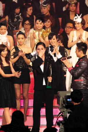 頒獎禮上,楊千嬅獲得“最受歡迎女歌手”獎,使容祖兒“六連霸”夢想破滅?裣驳乃陬I(lǐng)獎臺上哭得不能自已,一度蹲在地上不能站立。但是這個獎項卻遭到不少網(wǎng)友的質(zhì)疑。有網(wǎng)友認為,楊千嬅去年的成績并不理想,沒有一首歌唱到街知巷聞,人氣不及容祖兒和謝安琪,“那首入圍‘十大’的《撈月亮的人》,都沒怎么聽過,她還拿‘最受歡迎’,我看是造馬吧”。有讀者還給香港媒體去信,指楊千嬅去年只推出一張水平普通的唱片(《Wonder Miriam》),相比舉行了14場演唱會的容祖兒,顯然很有差距。