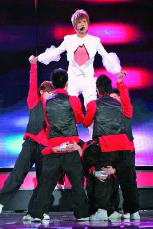前晚大牌很多話題明星不少,因“牽手門”備受關(guān)注的庾澄慶擔(dān)任表演嘉賓。但最終“脫穎而出”的還是李宇春(春春)。摘得“最佳舞臺(tái)演繹獎(jiǎng)”后,上臺(tái)表演《WHY ME》時(shí),完成開始的空翻動(dòng)作后春春邊唱邊跳,但上衣中間的紐扣突然裂開,由于表演的是快歌,紐扣爆裂位置越擴(kuò)越大,到結(jié)束時(shí)打底衫幾乎暴露出來。幾秒鐘后醒悟的春春,不時(shí)用手捂著胸口。事后談到“爆衫”一事,春春稱是對(duì)自己舞臺(tái)經(jīng)驗(yàn)的考驗(yàn),“工作人員嚇?biāo)懒,他們在臺(tái)下也不清楚,因?yàn)榇虻咨朗侨馍,所以很?dān)心。但沒有時(shí)間扣起來,并且動(dòng)作幅度減小也不好看!