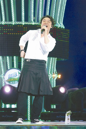 2009“雪碧中國(guó)原創(chuàng)音樂(lè)流行榜”日前在京揭曉,勇奪5項(xiàng)大獎(jiǎng)的陳奕迅穿著裙子亮相,他稱自己近年都是自己做造型師,裙子是逛街時(shí)偶然買回來(lái)的,想體會(huì)一下當(dāng)女生感覺(jué)。