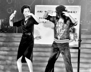 接下來(lái)的照片更搞笑,王小丫身著太空服,被取名為“天外來(lái)客”;董卿跳起了螃蟹舞;敬一丹和崔永元變身“紅軍”在舞臺(tái)上高歌“我的長(zhǎng)征”;王志和朱迅的婚紗照中,一臉“兇相”的王志捏著朱迅的小嘴,照片取名為“欺負(fù)你,怎么著?”。
