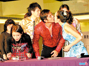 圖文:黃長興楊思琦現(xiàn)場玩游戲 不慎接吻露尷尬
