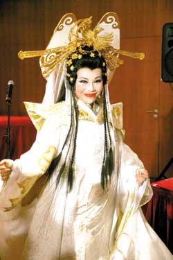從前天開始,《圖蘭朵》開始進入最后的排練階段。昨天,正在進行彩排的劇組全體成員整齊與京城媒體見面。為了讓記者先睹為快,中方“圖蘭朵”、歌唱家孫秀葦著宮廷盛裝出席發(fā)布會。而10年前曾經(jīng)在“太廟版”《圖蘭朵》中扮演公主的意大利歌唱家卡索拉興奮地表示,她沒有想到10年后自己能再一次回到北京再次扮演這個角色,她說:“我曾經(jīng)無數(shù)次的演出過這部戲,但是這部戲的舞美和服裝實在太漂亮了,以至于我為之著迷。能夠再次扮演這個角色,我感到非常幸福。”而普契尼節(jié)日基金會的負責人弗蘭克則表示,國家大劇院的這個版本是他見到的最美最感人的《圖蘭朵》。