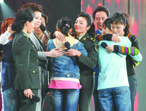 晚會(huì)現(xiàn)場(chǎng)請(qǐng)來(lái)了三名來(lái)自北川中學(xué)的高三學(xué)生,他們哭著講述了自己的地震經(jīng)歷,“叔叔阿姨你們知道我們看到了什么嗎?5樓高的學(xué)校一瞬間就變成了二三米的土堆,里面還有一些血肉模糊的手和腳。如果我的父母升入天堂,我會(huì)自己重建家園。地震都過去了,我們沒有死,我們也一定會(huì)去高考,我們還有希望!”孩子們這番含淚的話讓無(wú)數(shù)人淚光閃閃。同時(shí),晚會(huì)也向那些為保護(hù)學(xué)生而獻(xiàn)出自己寶貴生命的人民教師表達(dá)了最崇高的致意。而就在晚會(huì)現(xiàn)場(chǎng),三名同學(xué)中的一名,曾經(jīng)被溫家寶總理拉著手慰問的“孤兒”白琳找到了她的父親。就在節(jié)目剛剛播出了她的“孤兒”經(jīng)歷之后不久,白巖松馬上在現(xiàn)場(chǎng)告訴了大家一個(gè)好消息,白琳的父親通過晚會(huì)的直播看到了女兒,聯(lián)系到了晚會(huì)劇組,這也是讓現(xiàn)場(chǎng)露出最多笑容的一個(gè)消息,在現(xiàn)場(chǎng)剛剛跟家人取得聯(lián)系的白琳一邊哭著一邊對(duì)父親說(shuō),“爸爸,你現(xiàn)在沒事了,一定要當(dāng)志愿者,去幫助更多的人。”