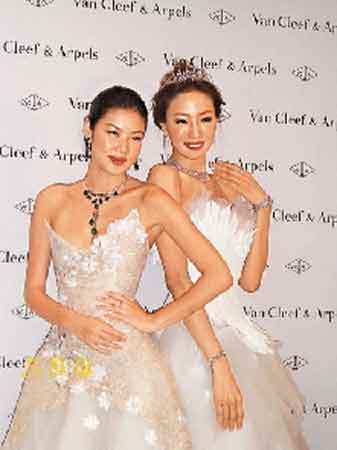 中新網(wǎng)5月23日電 據(jù)香港文匯報(bào)道,樂基兒和陳嘉容前晚齊齊穿起婚紗為一個(gè)珠寶品牌行走秀,樂基兒還戴上價(jià)值逾三千萬元的綠寶鉆飾,艷壓全場。