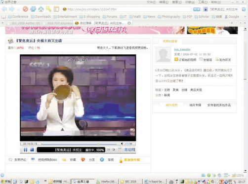 在這段19秒的視頻中可以看到,片頭剛出現(xiàn)“奧運(yùn)進(jìn)行時(shí)”的標(biāo)題,背景畫面是福娃舉著火炬奔跑過長城、鳥巢,接著便插入了廣告。問題出現(xiàn)在第14秒,鏡頭突然切到了女主播對鏡梳妝的畫面,當(dāng)時(shí)女主播拿著鏡子正在整理頭發(fā),那面大鏡子在整個(gè)屏幕上相當(dāng)?shù)膿屟郏嬅娌畈欢嘤幸幻腌姷臅r(shí)間。或許是導(dǎo)播發(fā)現(xiàn)了失誤,立刻將畫面切回到正常廣告中……一定是忙中出錯(cuò),切換到廣告的鏡頭居然鬼使神差地再一次回到了女主播身上,依然還拿著鏡子。在女主播兩次不合時(shí)宜的出鏡之后,節(jié)目才恢復(fù)了正常。貼出這段視頻的網(wǎng)友放炮說:“6月30日晚23點(diǎn)34分,《奧運(yùn)進(jìn)行時(shí)》播出前,突然鏡頭閃了一下,出現(xiàn)女主持拿著鏡子在整理頭發(fā)。而且還一連兩次呢!怎么CCTV又出錯(cuò)了呢?”在強(qiáng)大的網(wǎng)友面前,央視的失誤似乎無地隱藏。對于央視又一次的穿幫,不少網(wǎng)友都顯得習(xí)以為常的樣子,直接用各種的表情進(jìn)行回復(fù),也有個(gè)別網(wǎng)友表示這次的問題出在導(dǎo)播身上,不要老是拿主持人說事。