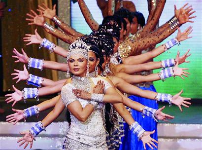 8月17日,在印度孟買舉行的第11屆“拉吉夫·甘地獎”頒獎儀式上,印度演員表演精彩節(jié)目!袄颉じ实鬲劇泵磕觐C發(fā)一次,獲獎?wù)邽閷τ《壬鐣龀鲐暙I(xiàn)的知名人士。(來源:都市女報(bào))