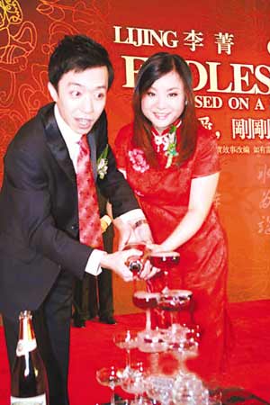 昨早10時,郭德綱、于謙、小何、春妮等應邀前來。郭德綱和于謙默契地以“白T恤蹭花了”的服裝出現(xiàn),頗為喜氣。他更在留言板上題詞“真是太刺激了!!”當天婚宴的主持由郭德綱擔當,他表示自己很少主持此類婚宴,但臺上與新郎李菁一唱一和的搭檔風趣幽默,令在場所有嘉賓開懷不已。他更形容新娘“五大三粗”語含深意,據(jù)知情人透露,新娘極有可能已經(jīng)懷孕。