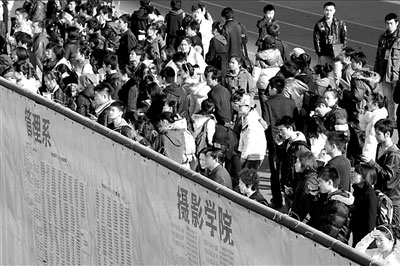 今年表演學(xué)院有4300多名考生報考,共1500多名考生進(jìn)入2月11日下午開始的復(fù)試,有2/3人被淘汰。表演學(xué)院副院長王勁松說,今年進(jìn)入復(fù)試的人數(shù)比往年少,因為今年只招收本科生,所以把關(guān)更嚴(yán)格。
