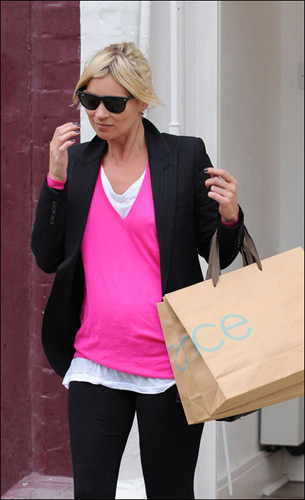OL的穿衣神話凱特·莫斯一向偏愛黑白灰三色調衣服,今次心情大好,為了襯托出好心情換上枚紅色衛(wèi)衣,配上黑色的西裝外套,醒目十足,黑色緊身襪子配黑靴子,高挑性感,看來粉色在今春將會掀起風潮。