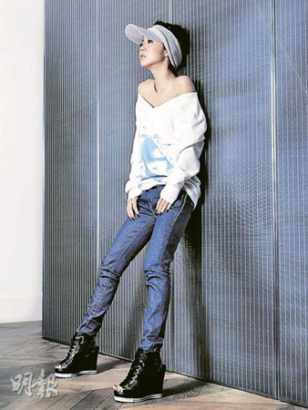 據(jù)香港《明報》報道,薛凱琪預測今年中性風將會大行其道,將略帶寬闊的仔褲,卷起褲管,配上平底皮鞋或色彩鮮艷的高跟鞋,英氣中滲出濃厚的少女味,又或是穿上寬闊的上衣,配襯窄身褲及船底鞋。