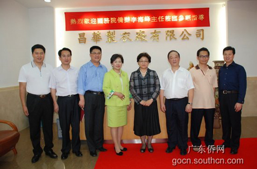 中新網7月28日電 據廣東僑網消息,7月26日,國務院僑辦主任李海峰在廣東省僑辦主任吳銳成的陪同下,專程來到廣州市番禺區(qū)潭洲鎮(zhèn)的僑資企業(yè)-昌泰國際集團有限公司考察。