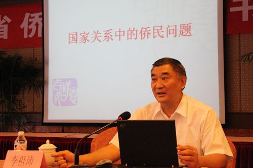 李祖沛就《國際關(guān)系中的僑民問題》向與會人員作了深刻闡述。他對僑民的產(chǎn)生、形成和身份界定作了講解,把國家關(guān)系對僑民的影響作了闡述,重點講解了僑民對雙邊關(guān)系、僑居國、祖(籍)國的影響。通過列舉大量事例,結(jié)合僑聯(lián)干部工作中遇到的許多問題,李祖沛作了詳細講解。針對僑民的特殊性和當前存在的現(xiàn)實問題,他也作了剖析,并在有關(guān)國家的僑民工作中也提到了一些具體做法和建議。