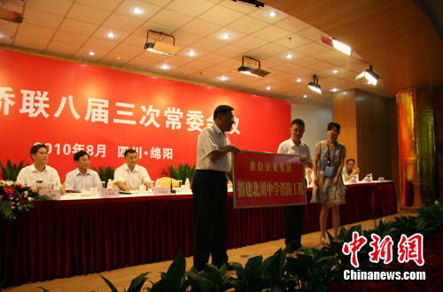 中新網(wǎng)綿陽(yáng)8月17日電 (南若然)中國(guó)僑聯(lián)八屆三次常委會(huì)17日在四川綿陽(yáng)召開,會(huì)上舉行了愛(ài)心企業(yè)和單位向援建北川中學(xué)工程捐贈(zèng)儀式。