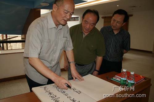參觀結(jié)束時,趙陽為廣東華僑博物館欣然題詞“保護(hù)發(fā)掘華僑歷史,教育啟示我們的后代”。(葉欣)