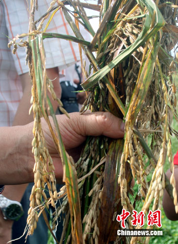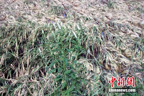 記者在當?shù)厮,大片成熟晚稻依然泡在水中。拔起一株看見谷穗已?jīng)發(fā)芽。隨行的中國熱帶科學(xué)院專家分析說,這樣的稻谷人已無法食用,唯有趕緊翻地準備下一季生產(chǎn)。