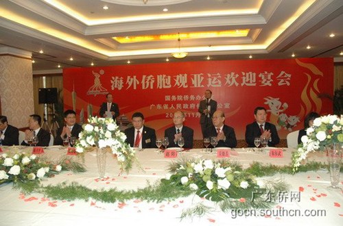 國僑辦副主任趙陽出席午宴并做了熱情洋溢的致辭。他說,亞運(yùn)是亞洲地區(qū)規(guī)模最大、水平最高的綜合性運(yùn)動(dòng)會(huì),為推動(dòng)亞洲體育事業(yè)發(fā)展、增強(qiáng)團(tuán)結(jié)、友誼和了解做出了積極貢獻(xiàn)。他對在廣州亞運(yùn)申辦和籌備工作中,海外僑胞支持亞運(yùn)的決心和行動(dòng),表示充分肯定。他對海外僑胞關(guān)心、支持中國經(jīng)濟(jì)發(fā)展和社會(huì)進(jìn)步,積極促進(jìn)中外友好,熱心僑社公益事業(yè),表示高度贊賞。他希望,廣大僑胞在發(fā)展自身事業(yè)、推動(dòng)住在國發(fā)展的同時(shí),努力做中國現(xiàn)代化建設(shè)的積極參與者,做中國統(tǒng)一大業(yè)的積極促進(jìn)者,做中華文明的積極傳播者,做中國人民和世界各國人民友好交往的積極推動(dòng)者,為家鄉(xiāng)繁榮、祖國富強(qiáng)、民族振興繼續(xù)貢獻(xiàn)力量。