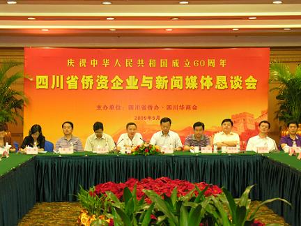 中新網(wǎng)9月10日電 “慶祝中華人民共和國成立60周年四川省僑資企業(yè)與新聞媒體懇談會(huì)”于9月3日在成都舉行,此活動(dòng)由四川省僑辦、四川華商會(huì)主辦,四川省部分僑資企業(yè)負(fù)責(zé)人與省市新聞媒體負(fù)責(zé)人和記者歡聚一堂,暢談偉大祖國成立60周年來的豐功偉績和僑資企業(yè)為四川省經(jīng)濟(jì)社會(huì)發(fā)展做出的貢獻(xiàn),共抒加強(qiáng)僑資企業(yè)與新聞媒體交流合作的友誼,探討新聞媒體走進(jìn)僑資企業(yè),共謀為四川省“加快建設(shè)災(zāi)后美好新家園,加快建設(shè)西部經(jīng)濟(jì)發(fā)展高地”作貢獻(xiàn)。