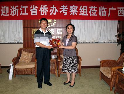 在雙方座談會(huì)上,鐘志英代表廣西自治區(qū)僑辦對(duì)浙江省僑辦學(xué)習(xí)考察組到南寧表示熱烈歡迎,并向他們簡(jiǎn)要介紹了廣西的區(qū)情、僑情以及廣西開展僑務(wù)工作和廣西北部灣經(jīng)濟(jì)區(qū)開放開發(fā)的情況。她表示,廣西僑辦和浙江僑辦在今后可加強(qiáng)多方面交流合作,共同促進(jìn)新形勢(shì)下僑務(wù)工作的開展。