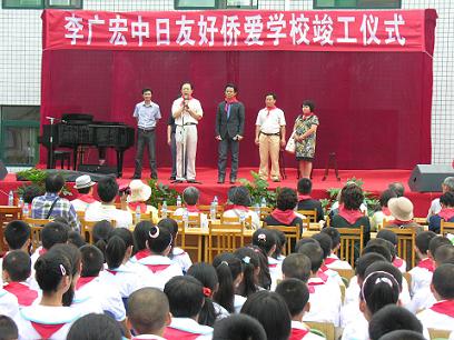 張繼勇在致辭中說,李廣宏先生情系四川、心系災(zāi)區(qū)。去年“5.12” 汶川特大地震發(fā)生后,李廣宏率日本友人五次來川,多次為災(zāi)區(qū)學(xué)生舉行演唱會(huì),用歌聲撫慰災(zāi)區(qū)學(xué)生受傷的心靈。后又拿出積蓄52.5萬元人民幣,在災(zāi)區(qū)捐建“李廣宏中日友好僑愛學(xué)校綜合樓”。今天,在各方面共同努力下,綜合教學(xué)樓終于建成了,我代表省僑辦對此表示熱烈祝賀,對李廣宏先生及日本友人的到來表示熱烈歡迎和衷心感謝。他希望學(xué)校師生搞好教學(xué),發(fā)奮勤學(xué),為實(shí)現(xiàn)四川省“兩個(gè)加快”努力工作,以優(yōu)異成績迎接建國60周年到來。