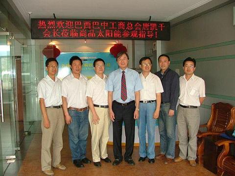 中新網(wǎng)9月16日電 9月9日,巴西巴中工商總會(huì)會(huì)長唐凱千先生來到無錫,在無錫市僑辦、惠山區(qū)僑辦工作人員的陪同下,考察了無錫尚品太陽能電力科技有限公司、江蘇玉龍鋼管股份有限公司,并與公司領(lǐng)導(dǎo)就貿(mào)易與合作等事宜進(jìn)行了洽談。