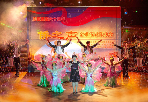 中新網(wǎng)9月29日電 明月迎中秋,團(tuán)圓慶國慶。9月27日,寧波余姚市僑務(wù)系統(tǒng)首次舉行了具有“僑”之特色的文娛活動——“僑之聲”余姚市僑界慶祝新中國成立60周年聯(lián)歡會。市政協(xié)副主席、市委統(tǒng)戰(zhàn)部部長葉文龍,市僑辦主任、僑聯(lián)主席黃孟丹等領(lǐng)導(dǎo)出席,全市僑界政協(xié)委員、僑聯(lián)委員以及部分歸僑僑眷、留學(xué)人員及其家屬、僑資僑屬企業(yè)家、基層僑務(wù)工作者,共計400余人共同歡度了節(jié)日的聚會。