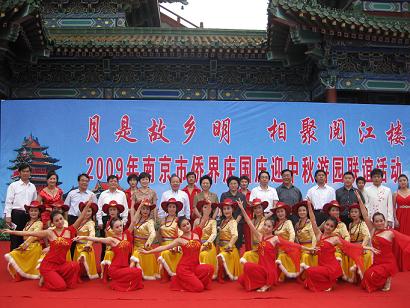在閱江樓下,由南京市僑辦主任顏健建主持,舉行了以僑界群眾自娛自樂為主的露天文藝演出。演出以迎中秋、慶十一為主題,載歌載舞,表達(dá)了南京市歸僑、僑眷及海外僑胞對于祖國富強、國泰民安的自豪之情、喜悅之情,整臺演出熱烈、溫馨。