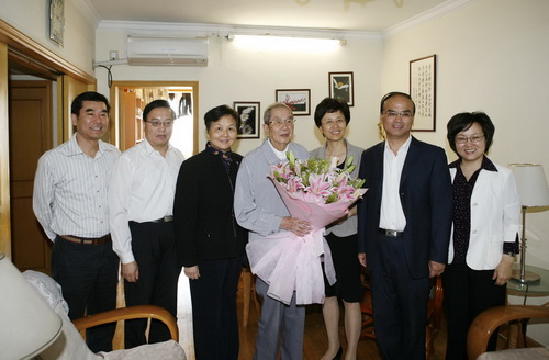 上海市委統(tǒng)戰(zhàn)部副部長丁志堅、市慈善基金會副理事長兼秘書長金閔珠、市僑聯(lián)副主席張癸和市僑辦副主任陳文佳看望了菲律賓歸僑、中科院上海植物生理生態(tài)研究所研究員施教耐院士和美國歸僑、中科院上海有機化學研究所研究員蔣錫夔院士,感謝他們在各自的科研領(lǐng)域為社會做出的杰出貢獻,是僑界的驕傲。