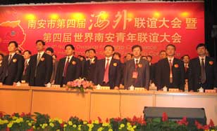 7日下午,南安市第四屆海外聯(lián)誼大會暨第四屆世界南安青年聯(lián)誼大會在南安市人民會堂隆重舉行。福建省委統(tǒng)戰(zhàn)部副部長莊奕賢、省僑辦副主任鄧倫成、省僑聯(lián)副主席兼秘書長林澤春等領(lǐng)導(dǎo)應(yīng)邀出席;全國政協(xié)委員、香港福建社團(tuán)聯(lián)會主席林樹哲等來自16個國家和地區(qū)的南安籍僑親,以及世界各地的南安青年代表500多人齊聚故里,共敘鄉(xiāng)誼、共謀發(fā)展。會上,聘任了新一屆理事會成員,丁瑞金任海外聯(lián)誼會第四屆理事會會長,林懷榮任世界南安青年聯(lián)誼會第四屆理事會會長。香港南安公會和深南企業(yè)協(xié)會分別向南安市慈善總會捐贈30萬元和20萬元,支持家鄉(xiāng)慈善事業(yè)。