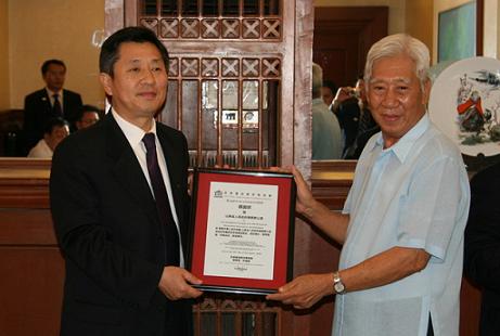 中新網(wǎng)11月25日電 據(jù)山東省僑辦消息, 11月23日,山東省僑務(wù)訪問團(tuán)拜訪了中國駐菲律賓宿務(wù)領(lǐng)事館,與總領(lǐng)事何時敬舉行了座談,并向領(lǐng)事館贈送了紀(jì)念品。隨后訪問團(tuán)前去拜會了宿務(wù)菲華商會,該會理事長林倫超及各位理事熱情接待了訪問團(tuán)一行。