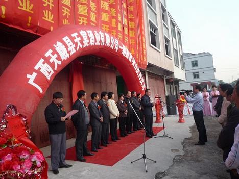 當(dāng)天,鐘志英、藍(lán)勝還參加了僑屬企業(yè)廣西天峨縣天宴酒業(yè)有限公司一期建設(shè)項(xiàng)目竣工慶典儀式。