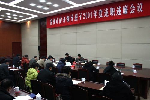 中新網(wǎng)12月22日電 據(jù)常州市僑辦消息,12月19日,江蘇省常州市僑辦領(lǐng)導(dǎo)班子2009年度述職述廉會議在行政中心青云廳召開。常州市、轄市、區(qū)僑辦主任、副主任,市僑辦全體機(jī)關(guān)干部,市僑辦機(jī)關(guān)作風(fēng)監(jiān)督員參加了會議。