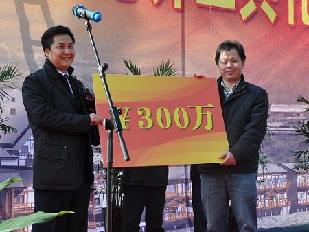 中新網(wǎng)12月31日電 據(jù)青田縣發(fā)展和改革局消息,12月28日,浙江省青田縣高市旅游接待中心舉行開工典禮。中國(guó)僑聯(lián)副主席、寧夏回族自治區(qū)僑聯(lián)主席、浙江省僑聯(lián)青年總會(huì)榮譽(yù)會(huì)長(zhǎng)朱奕龍為開工典禮剪彩,并為高市村新農(nóng)村建設(shè)個(gè)人捐贈(zèng)300萬元,青田縣領(lǐng)導(dǎo)王通林、楊雷、葉選君、陳海民、呂大德、舒志勇及縣相關(guān)職能部門代表參加了儀式。