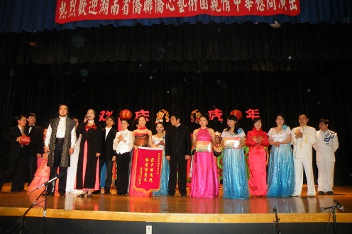 中新網(wǎng)1月25日電 據(jù)湖南省僑聯(lián)消息,旅美湖南同鄉(xiāng)會(huì)與紐約華人社團(tuán)聯(lián)席會(huì)于當(dāng)?shù)貢r(shí)間1月23日在美國(guó)紐約皇后區(qū)江邦高中共同舉辦虎年春節(jié)慶祝晚會(huì)。湖南僑聯(lián)僑心藝術(shù)團(tuán)“親情中華”赴美慰問演出團(tuán)的專業(yè)演出獲在場(chǎng)華僑華人好評(píng),現(xiàn)場(chǎng)掌聲不斷。