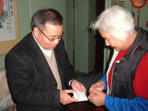中新網(wǎng)1月25日電 據(jù)上海市僑辦消息,1月21日是上海世博會(huì)倒計(jì)時(shí)100天。為了讓老歸僑感受世博會(huì)的精彩紛呈,享受改革開放的成果。上海市寶山區(qū)僑辦主任黃忠華,區(qū)僑辦副主任于波,將2010年上海世博會(huì)的門票送到了陳雁如和孫愛蓮等早期老歸僑的手中。