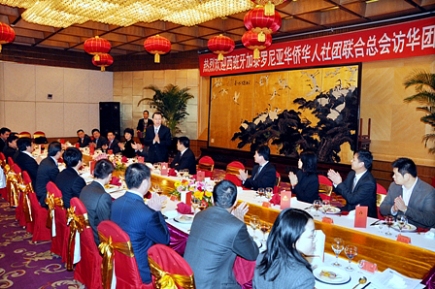 中國(guó)僑聯(lián)權(quán)益保障部部長(zhǎng)姜鳳巖、經(jīng)濟(jì)科技部部長(zhǎng)陳樺、海外聯(lián)誼部副部長(zhǎng)楊嘉明、文化交流部副部長(zhǎng)杜海東等參加會(huì)見(jiàn)。