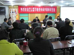交流會(huì)上,首先由西口敏宏教授做《超越世界的社會(huì)網(wǎng)絡(luò)和中國溫州的巨變》的報(bào)告,以溫州巨變?yōu)槔龑?duì)規(guī)則網(wǎng)絡(luò)與小世界網(wǎng)絡(luò)進(jìn)行了詳細(xì)的講解與闡述,并對(duì)如何利用小世界網(wǎng)絡(luò)研究當(dāng)前的移民問題做了探討。辻田教授介紹日本的中國福建省勞動(dòng)移民情況(以福清為例),通過一系列詳實(shí)的數(shù)據(jù)顯示了旅日閩僑的一些基本狀況,并提到,當(dāng)前日本老齡化嚴(yán)重,如何接受外來勞動(dòng)力的問題在日本已普受關(guān)注。