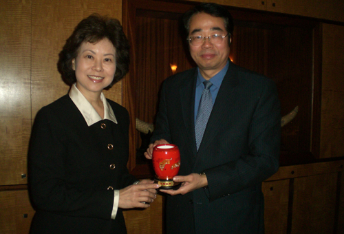 中新網(wǎng)3月2日電 2月28日中午,率“文化中國 四海同春”藝術團在美東地區(qū)訪演的國務院僑辦副主任許又聲在駐紐約總領事彭克玉及夫人陪同下,應邀出席了前美國勞工部長趙小蘭及其父親趙錫成博士舉行的午宴。