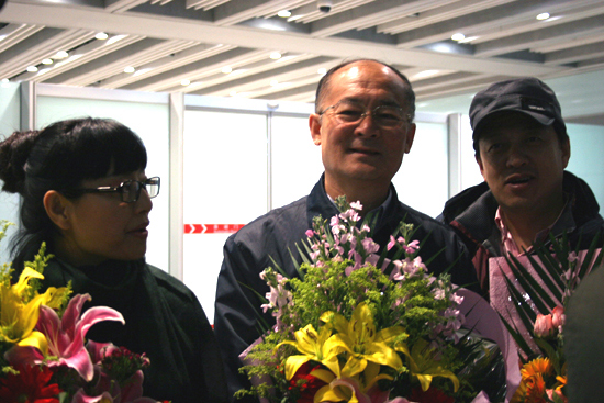 中新社北京3月5日電 (南若然) 5日清晨,由新西蘭基督城飛至北京的航班降落首都機場!八暮M骸备按笱笾匏囆g(shù)團在結(jié)束了歷時19天的行程之后,載譽返回北京。