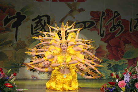 著名歌唱家劉斌、呂微為觀眾們演唱了《咱當(dāng)兵的人》、《茶花女》等家喻戶曉的經(jīng)典歌曲。維吾爾族舞蹈《頂碗舞》、哈薩克族舞蹈《可愛的一朵玫瑰花》展現(xiàn)了中國西域少數(shù)民族的優(yōu)美舞姿,“千手觀音”舞蹈為觀眾們送來了虔誠的祝福,整場演出氣勢磅礴,觀眾如癡如醉,臺上臺下互動不斷,高潮迭起。