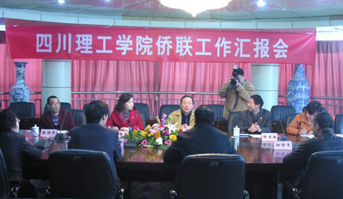 馮文廣一行還前往四川理工學(xué)院調(diào)研并參加學(xué)院僑聯(lián)工作匯報會,參加匯報會的有自貢市市委常委、政法委書記王建威、四川理工學(xué)院黨委副書記唐健禾、統(tǒng)戰(zhàn)部部長邱仲平、僑聯(lián)副主席李絢以及自貢市政協(xié)副主席葉智英、自貢市僑聯(lián)主席陳建新和自貢市僑商會會長陳祥平、副會長胡學(xué)剛等。會議聽取了四川理工學(xué)院黨委副書記唐健禾關(guān)于學(xué)院基本情況及學(xué)院統(tǒng)戰(zhàn)、僑務(wù)工作的介紹和學(xué)院僑聯(lián)副主席宋絢關(guān)于學(xué)院近年僑務(wù)工作的匯報。