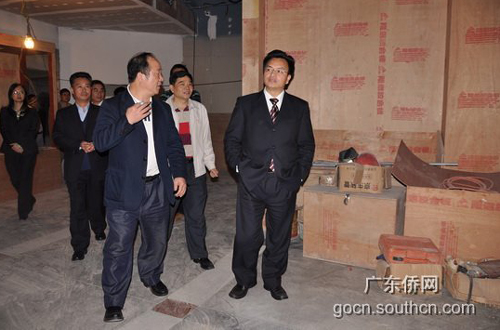 中新網(wǎng)3月30日電 據(jù)廣東僑網(wǎng)消息,3月26日下午,在出席廣東省僑辦召開的“杰出華僑華人專業(yè)人士創(chuàng)新座談會(huì)”后,廣東省副省長萬慶良在廣東省政府副秘書長劉曉捷、廣東省僑辦主任吳銳成的陪同下,參觀廣東華僑歷史陳列,并視察廣東華僑博物館二期陳展施工現(xiàn)場,指導(dǎo)推動(dòng)廣東華僑博物館建設(shè)。