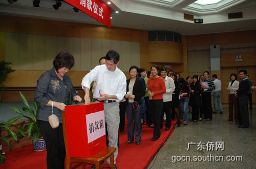 中新網(wǎng)4月26日電 據(jù)廣東僑網(wǎng)消息,4月26日,廣東省僑辦在機(jī)關(guān)二樓禮堂舉行“送溫暖,獻(xiàn)愛(ài)心” 捐款儀式,廣東省僑辦主任吳銳成率班子成員及全體干部職工參加捐款活動(dòng)并帶頭捐款,機(jī)關(guān)干部職工及直屬單位共向?yàn)?zāi)區(qū)捐款40萬(wàn)元。